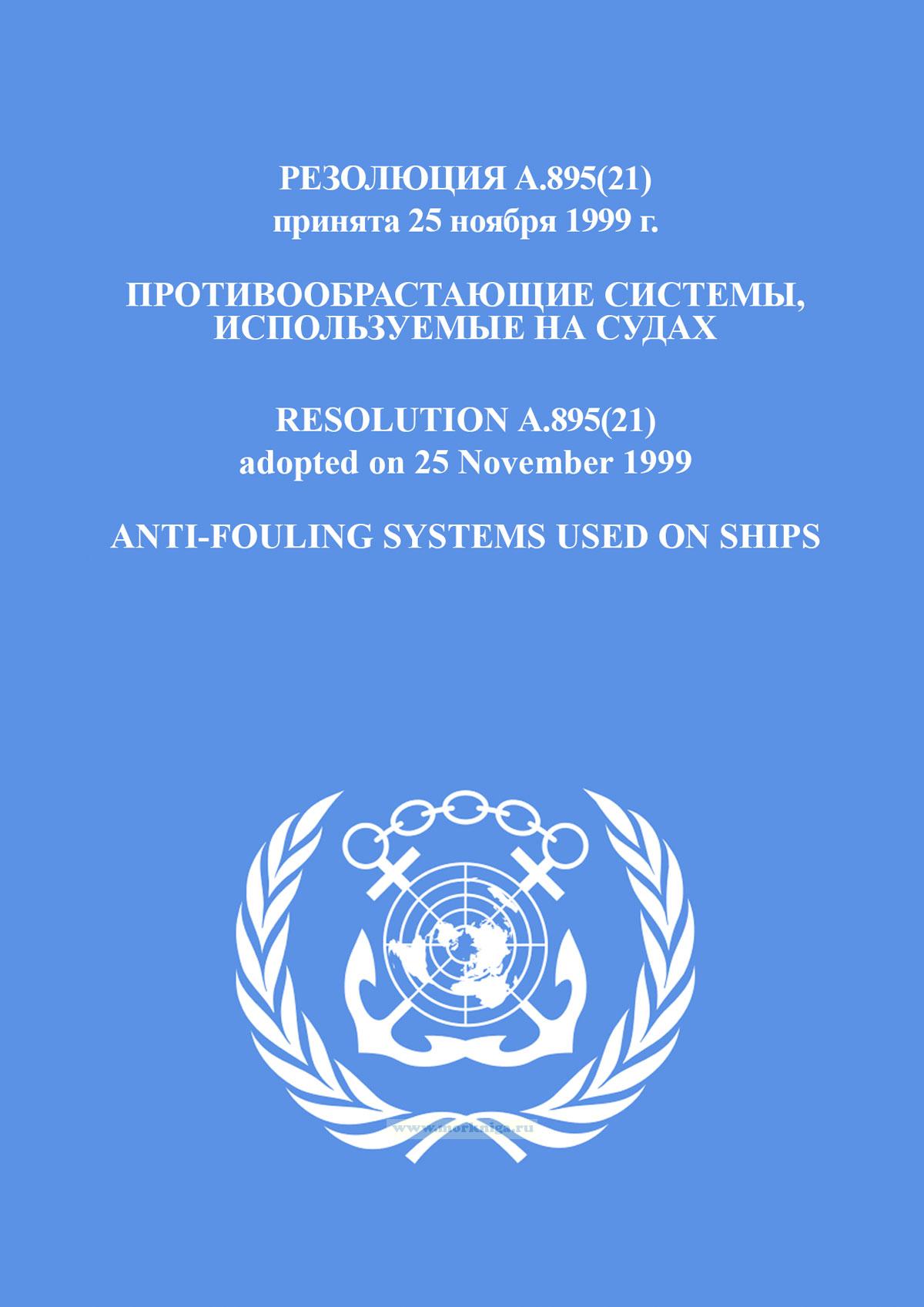 Резолюция А.895(21). Противообрастающие системы, используемые на судах включена в Сборник № 14 резолюций ИМО. Collection No.14 of IMO Resolutions