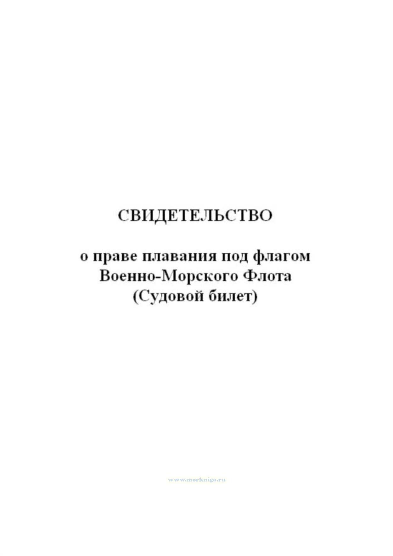 Форма Свидетельства о праве плавания под флагом Военно-Морского Флота (Судовой билет) соответствует Приложению №2 к Руководству по эксплуатации и техническому обслуживанию судов военно-морского флота (РЭТОС ВМФ-2007).