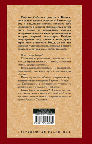 Отважный мореплаватель, первым доплывший до берегов Америки, - земли, названной именем другого капитана... Великий первооткрыватель - и авантюрист, полагавший, что ищет путь в златоносную Индию. Поначалу он был облечен доверием могущественнейшей из королев - Изабеллы Кастильской, впоследствии утратил ее дружбу и умер в бедности и забвении. Каким был этот человек? О чем мечтал, чего желал, чего добивался? Читайте об этом в романе классика историко-приключенческой прозы Рафаэля Сабатини.