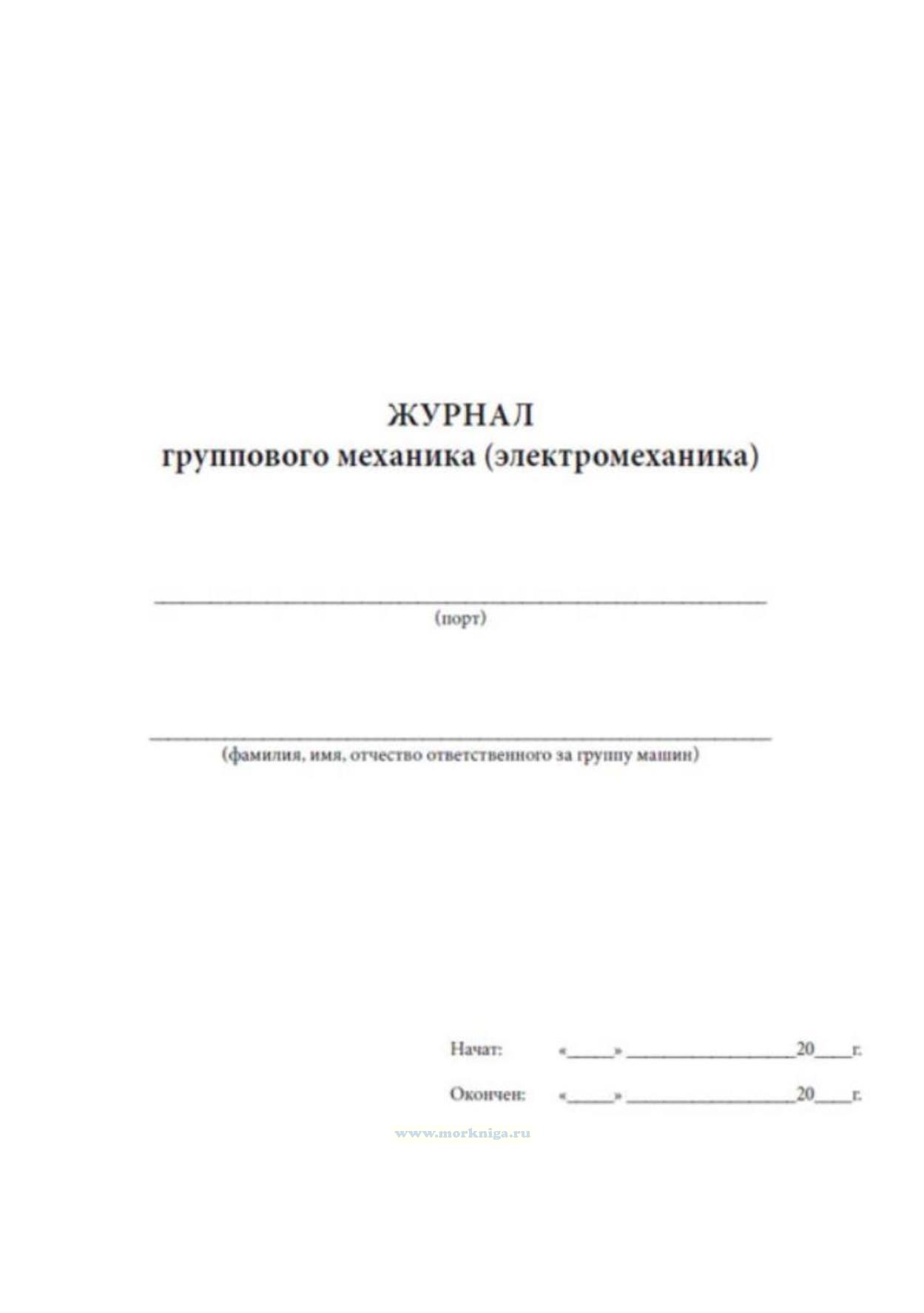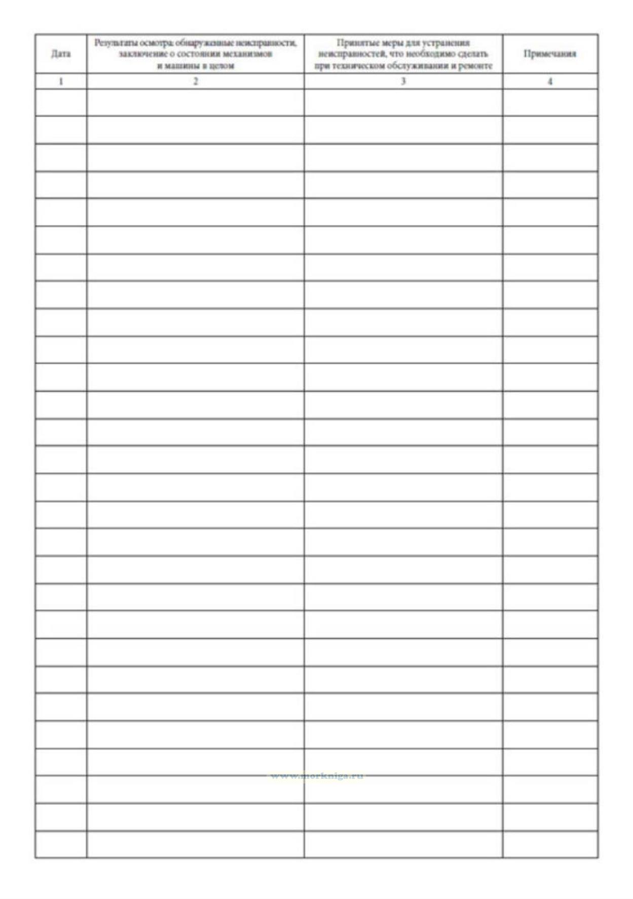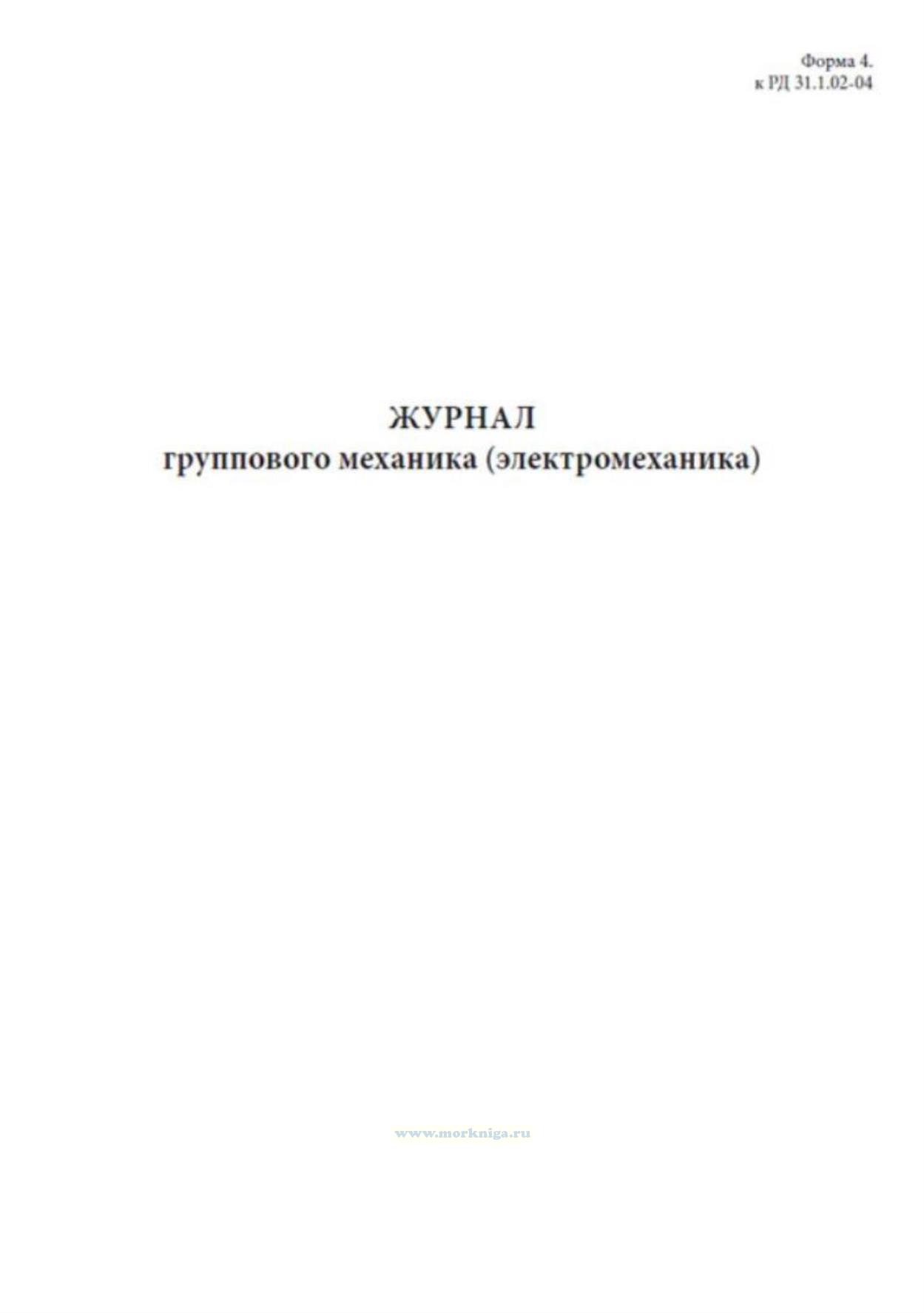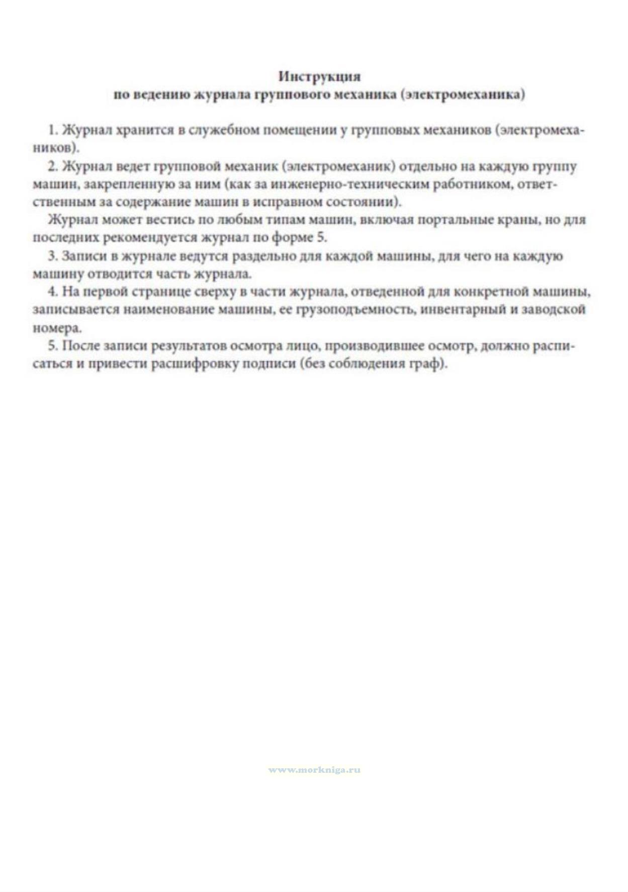Форма журнала группового механика (электромеханика) соответствует Приложению 14 (Форма 4) к Правилам технической эксплуатации подъемно-транспортного оборудования морских торговых портов.