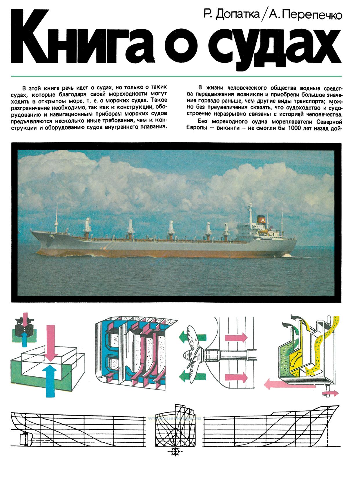 В книге рассказано о морских судах различного назначения, их механизмах, оборудовании, об устройстве судов, навигации, судоходстве.