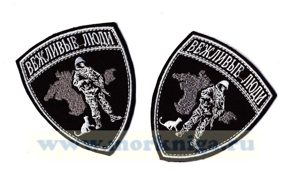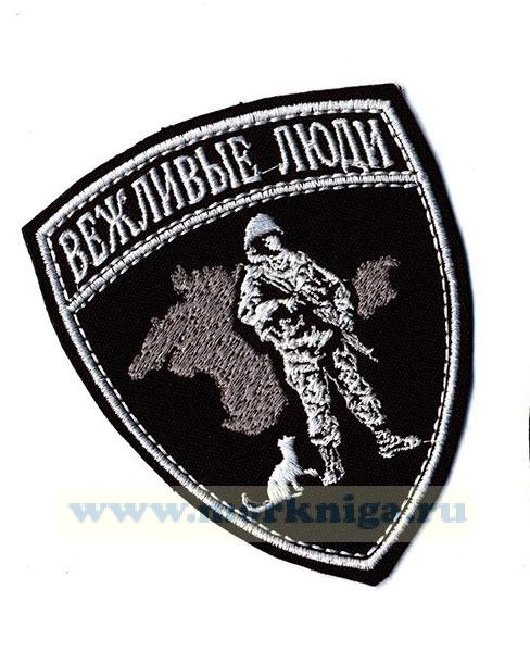 Нашивка вышитая нарукавная "Вежливые, добрые, свои" (черная) тканевая основа
