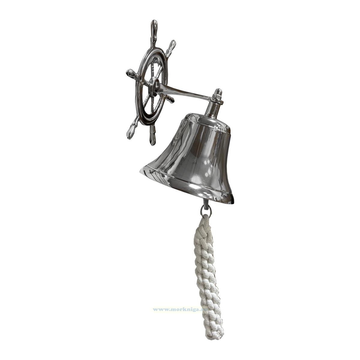 Настенная корабельная рында в хромированном исполнении - стильный декоративный элемент, который мгновенно создает атмосферу морского приключения и добавляет интерьеру яркий акцент. Благодаря прочному корпусу из алюминия и зеркальному хромированному покрытию колокол выглядит эффектно, современно и при этом сохраняет классическую морскую эстетику. Основание выполнено в виде корабельного штурвала, что под черкивает тематику и делает изделие удачным выбором для дома, офиса, дачи, бани или тематического заведения. Колокол издает звонкий, чистый звук, а длинная плетёная веревка обеспечивает удобство при использовании. Его легко установить на стену, а универсальный дизайн позволяет вписать аксессуар как в классический, так и в современный интерьер. Прочный, долговечный и эффектный - он станет отличным подарком для тех, кто ценит морской стиль и оригинальные детали декора.
