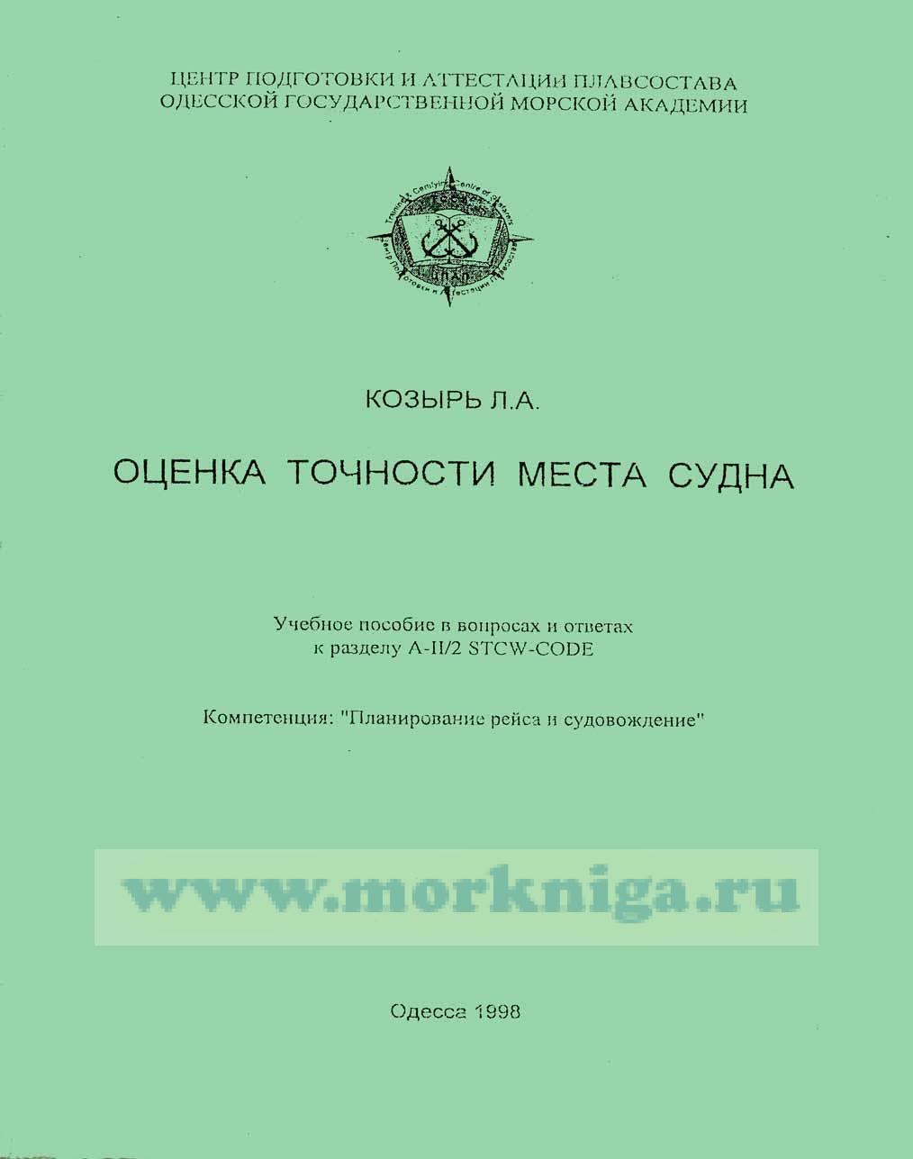 Рассмотрено и одобрено секцией "Судовождение" Государственной научно-методической комиссией Министерства Образования Украины, протокол № 7/103 от 3 октября 1997 г.