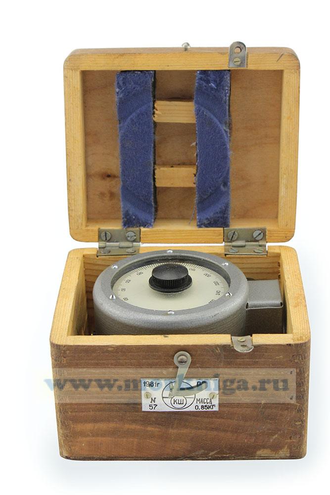 Дефлектор ДР применяют для измерения горизонтальных составляющих вектора магнитного поля, действующего на картушку компаса. Необходим при уничтожении девиации. Год выпуска - 1981 г. Масса - 0,85 кг Зав. № 57