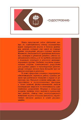 В книге рассмотрены условия и причины, приводящие к кавитационным повреждениям охлаждаемых поверхностей втулок и блоков цилиндров средне- и малооборотных судовых дизелей. Показано влияние вибрации, конструктивных, эксплуатационных факторов и физико-химических свойств охлаждающей жидкости на интенсивность кавитационных разрушений в узких полостях охлаждения. Выявлены причины кавитационных разрушений в крейцкопфных дизелях. Предложен комплекс мероприятий по защите дизелей от кавитационных повреждений.