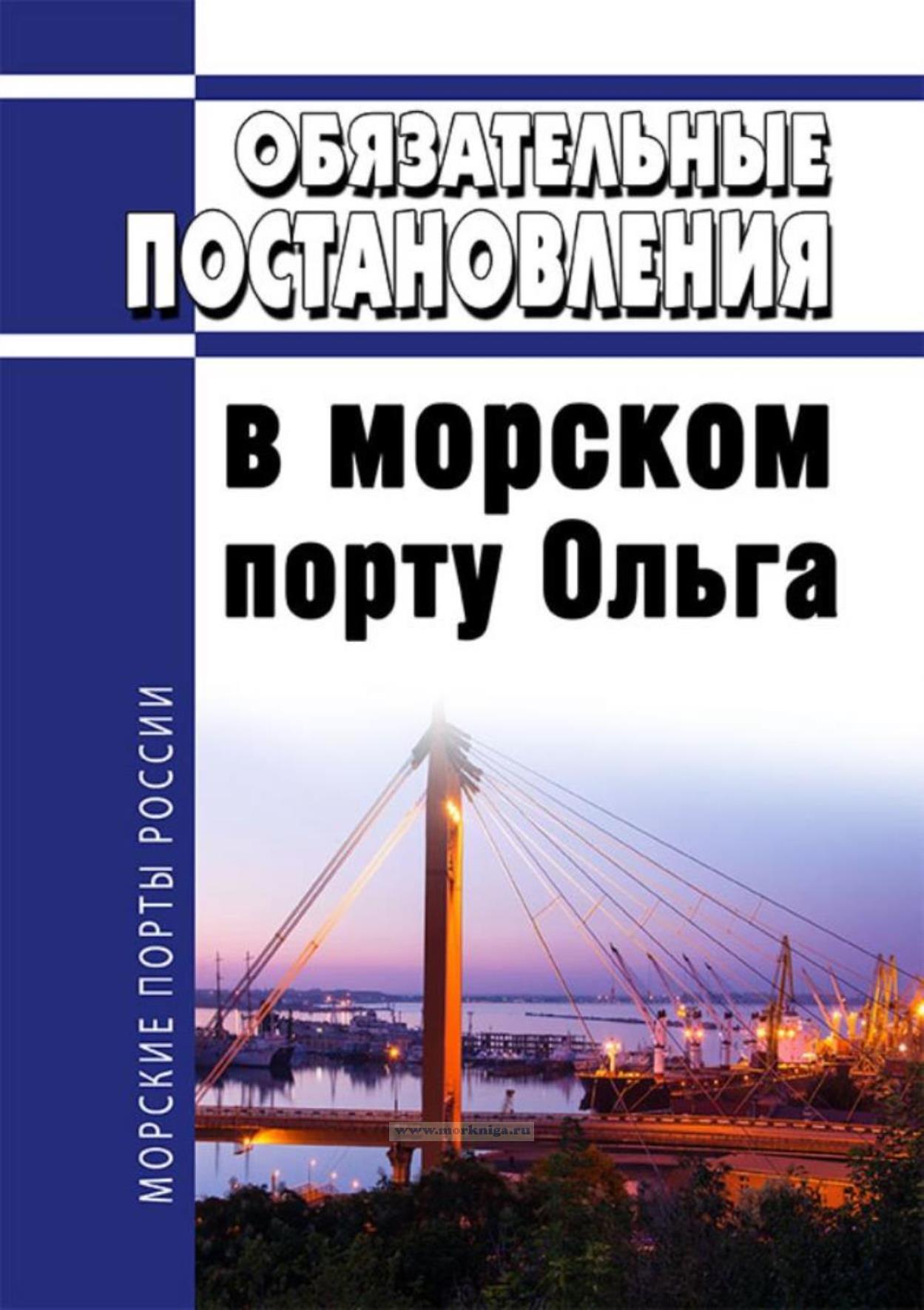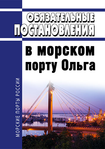 Обязательные постановления в морскому порту Ольга разработаны в соответствии с Федеральным законом от 8 ноября 2007 года N 261-ФЗ "О морских портах в Российской Федерации и о внесении изменений в отдельные законодательные акты Российской Федерации", Федеральным законом от 30 апреля 1999 года N 81-ФЗ "Кодекс торгового мореплавания Российской Федерации", Общими правилами плавания и стоянки судов в морских портах Российской Федерации и на подходах к ним.