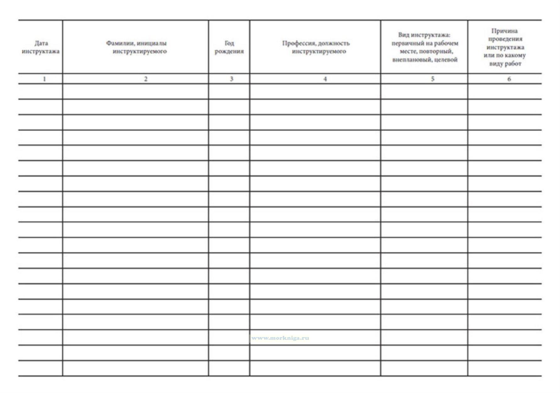 Журнал регистрации инструктажа по охране труда имеет графы: