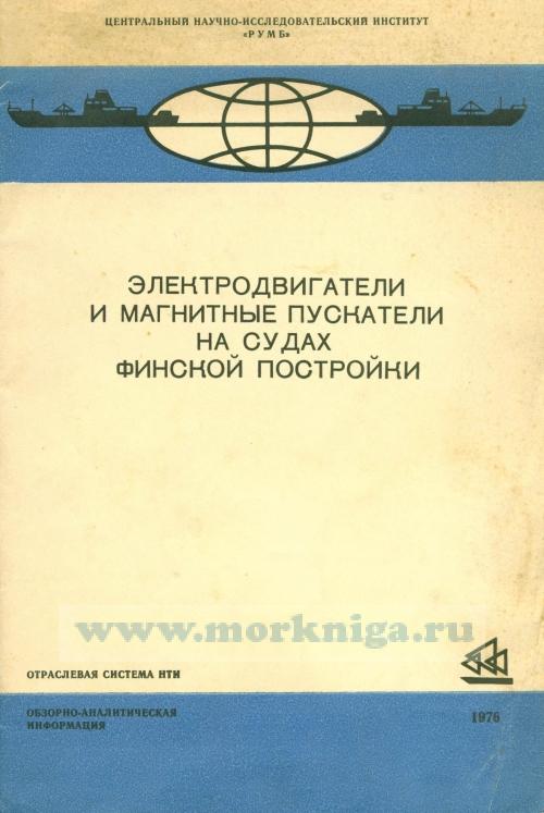 Приведены технические данные и конструктивные особенности асинхронных электродвигателей и магнитных пускателей, которые устанавливаются на судах финской постройки.