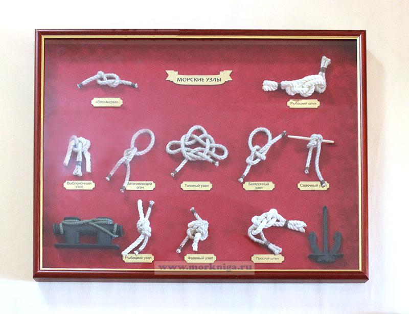 Стенд "Морские узлы" имеет 3 вида и представляет собой информационную панель, на которой размещены сведения о видах морских узлов и их наглядные образцы.