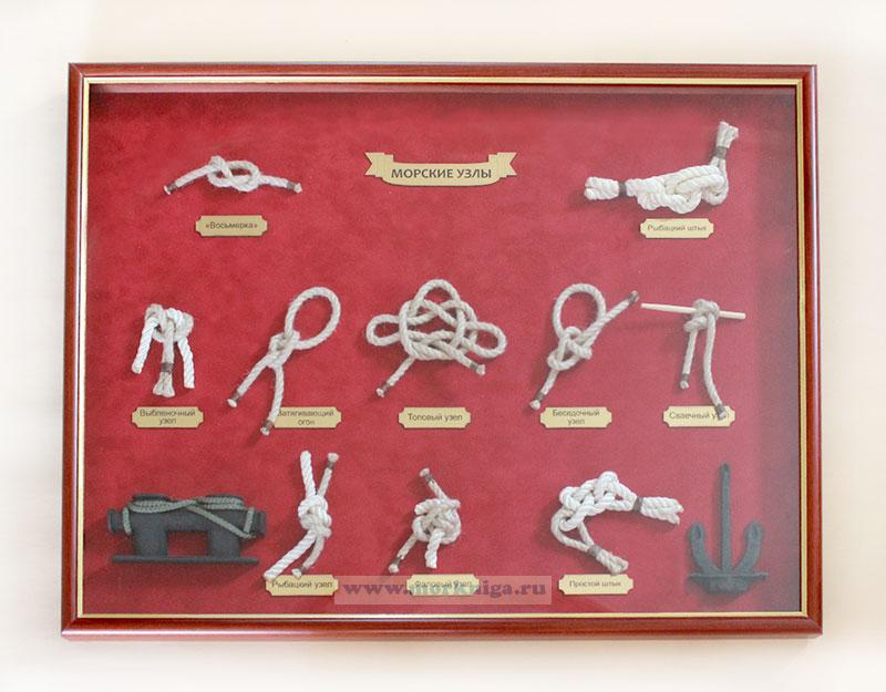 Стенд предназначен для наглядного отображения информации, а также для формирования знаний о видах и способах завязывания морских узлов.