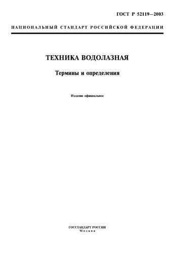 "ГОСТ Р 52119-2003. Национальный стандарт Российской Федерации. Техника водолазная. Термины и определения" принят и введен в действие Постановлением Госстандарта России от 06.10.2003 N 279-ст.
