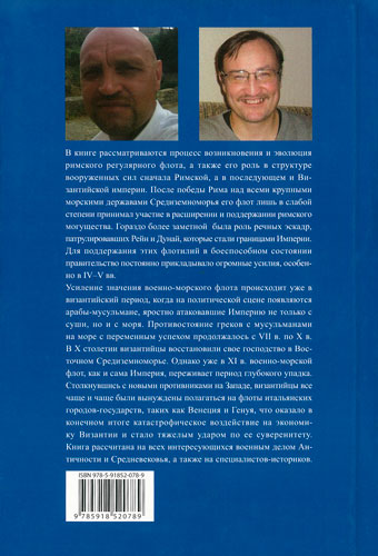 В книге рассматриваются процесс возникновения и эволюция римского регулярного флота, а также его роль в структуре вооруженных сил сначала Римской, а в последующем и Византийской империи. После победы Рима над всеми крупными морскими державами Средиземноморья его флот лишь в слабой степени принимал участие в расширении и поддержании римского могущества. Гораздо более заметной была роль речных эскадр, патрулировавших Рейн и Дунай, которые стали границами Империи. Для поддержания этих флотилий в боеспособном состоянии правительство постоянно прикладывало огромные усилия, особенно в IV-V вв. Усиление значения военно-морского флота происходит уже в византийский период, когда на политической сцене появляются арабы-мусульмане, яростно атаковавшие Империю не только с суши, но и с моря. Противостояние греков с мусульманами на море с переменным успехом продолжалось с VII в. по X в. В X столетии византийцы восстановили свое господство в Восточном Средиземноморье. Однако уже в XI в. военно-морской флот, как и сама Империя, переживает период глубокого упадка. Столкнувшись с новыми противниками на Западе, византийцы все чаще и чаще были вынуждены полагаться на флоты итальянских городов-государств, таких как Венеция и Генуя, что оказало в конечном итоге катастрофическое воздействие на экономику Византии и стало тяжелым ударом по ее суверенитету. Книга рассчитана на всех интересующихся военным делом Античности и Средневековья, а также на специалистов-историков. В книге множественные ссылки на Эвпатриды удачи.