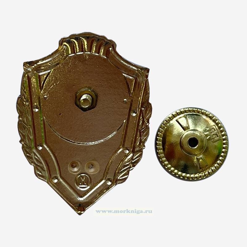 На знаке в форме щита обромленном лавровыми ветвями изображен двухглавый орел с надписью "Отличник ВМФ", два якоря. Латунь, горячая эмаль, расчистка См. также Нагрудный знак "Отличник ВМФ РФ"