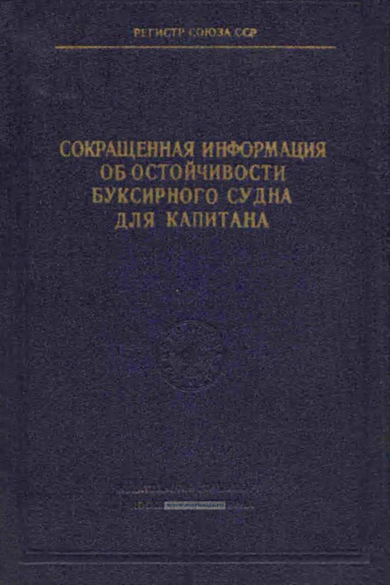 Сокращенная информация об остойчивости буксирного судна для капитана разрешается к применению для судов ограниченного района плавания, в практике эксплуатации которых не могут встретиться неспецифицированные случаи нагрузки.