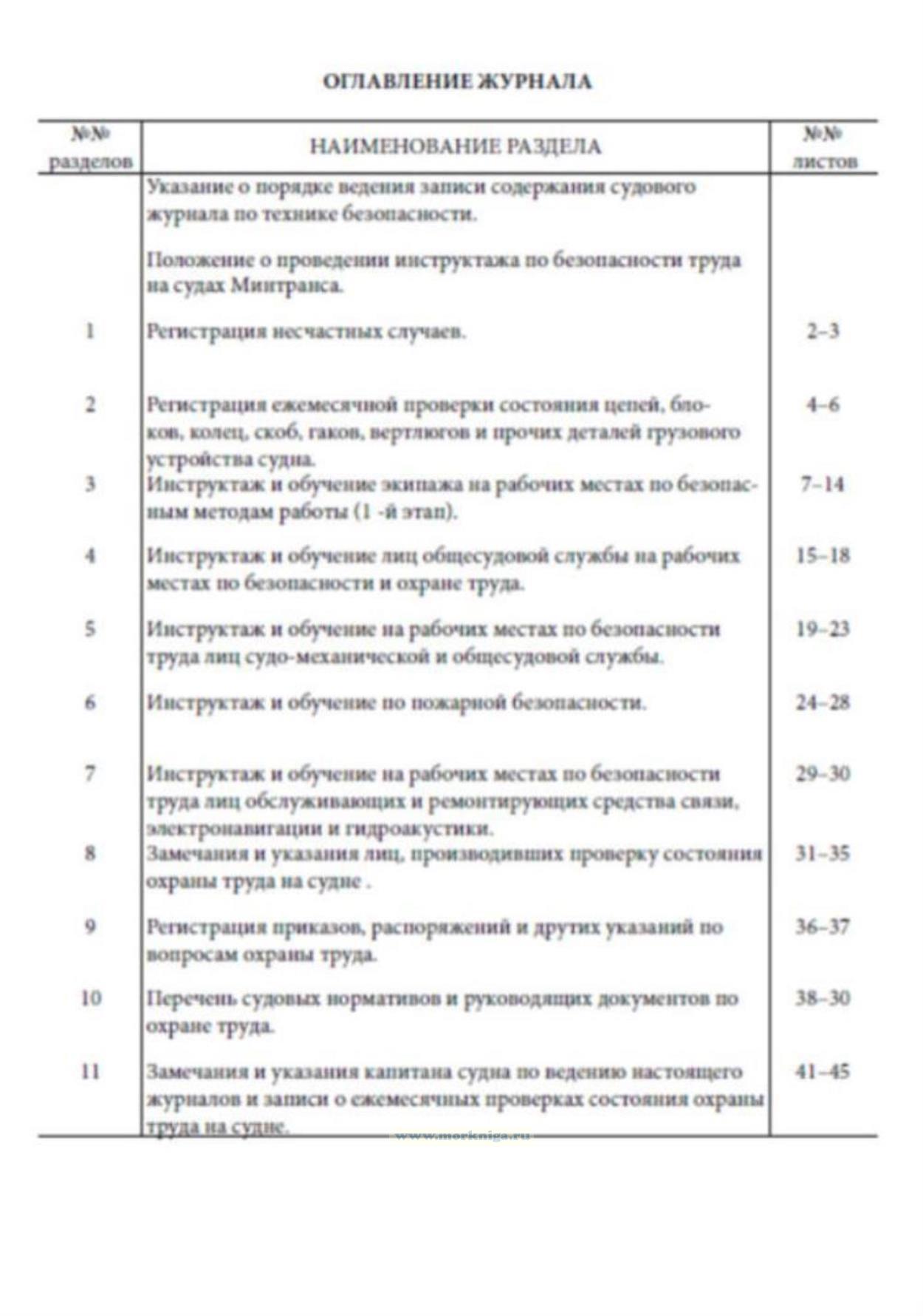 Для записи данных о инструктажах по технике безопасности на судах в соответствии с Правилами по охране труда на судах морского и речного флота ведут судовой журнал инструктажей по технике безопасности.