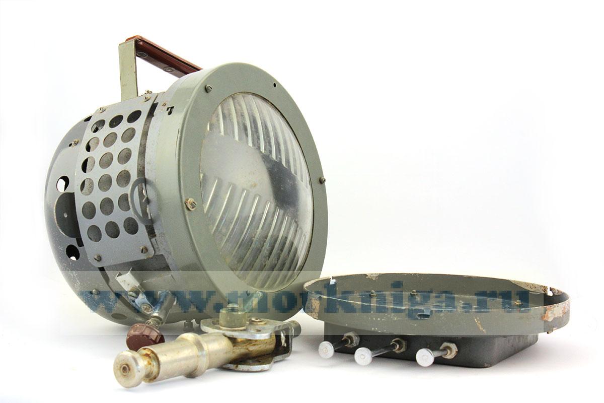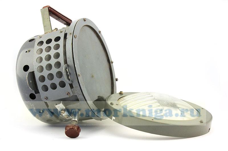 Прожектор типа "Проблеск" предназначен для дневной и ночной визуальной связи судов с помощью световых сигналов. В алюминиевом литом корпусе фонаря закреплены жалюзи для одноцветной сигнализации, стеклянный отражатель, патрон с лампой и выключателем. Спереди корпус закрыт защитным стеклом.