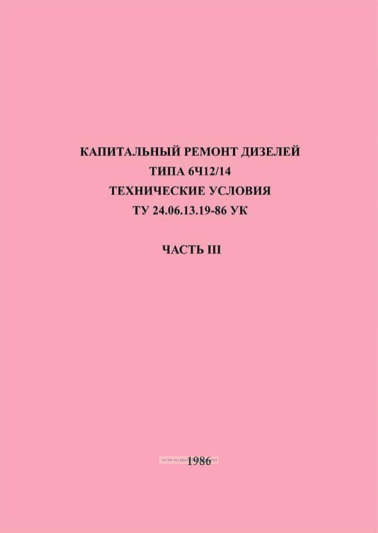 См. также Капитальный ремонт дизелей типа 6Ч12/14 Технические условия ТУ 24.06.13.19-86 УК (взамен ТУ 452.01-7. Часть 1