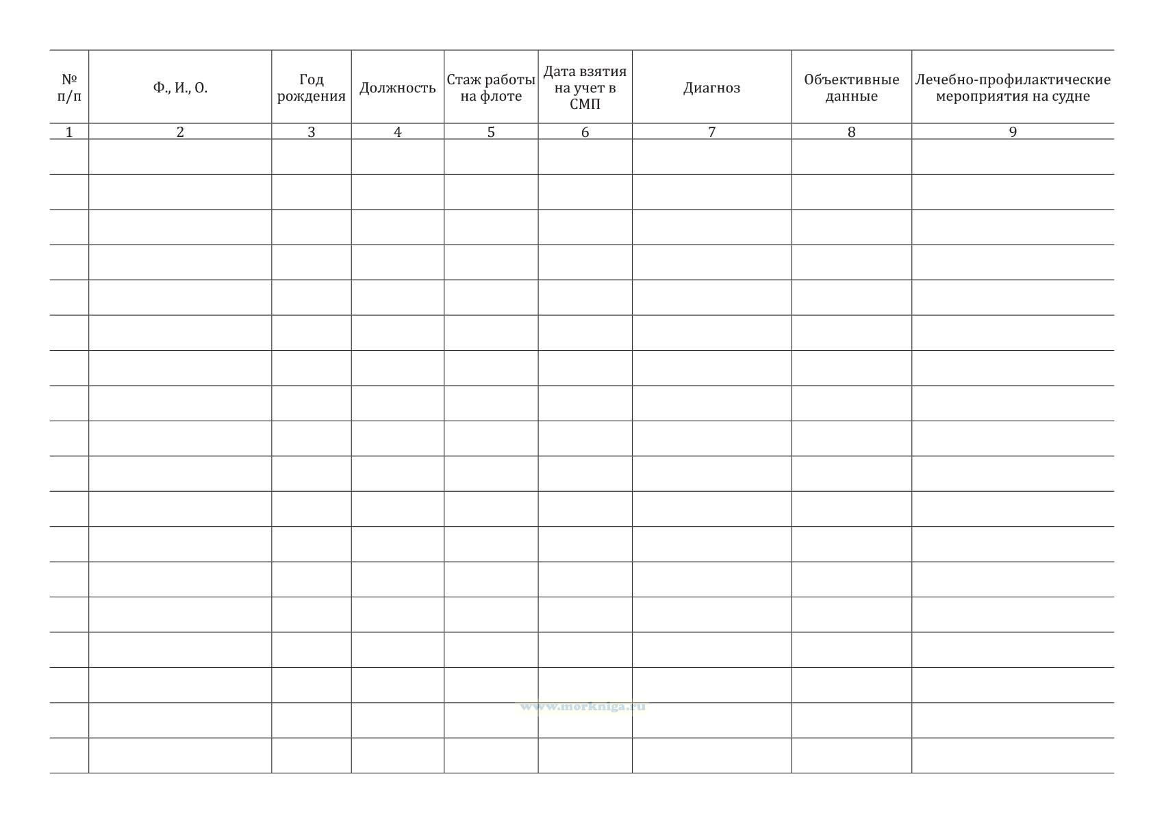 Журнал диспансерного наблюдения больных, форма №30 является контрольным документом по наблюдению и лечению тех членов экипажа, которые находятся на диспансерном наблюдении в связи с наличием хронического заболевания и рекомендаций цехового врача.
