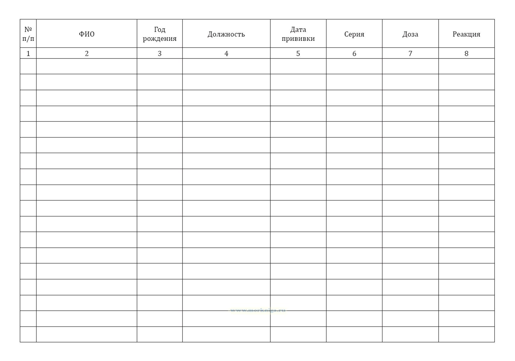 Графы журнала учета профилактических прививок плавсостава, форма №64: