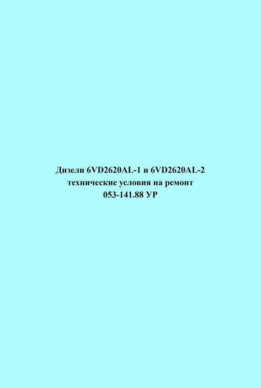 ТУ являются обязательным руководящим документом для всех предприятий, производящих ремонт и эксплуатирующих дизели 6VD26/20AL-I и 6VD26/20AL-2.