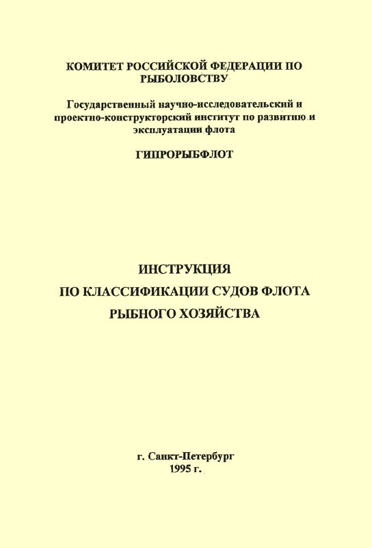 Настоящая «Инструкция по классификации судов флота рыбного хозяйства (в дальнейшем «Инструкция») разработана на основании «Положения о классификации судов промыслового флота» (утверждено приказом Минрыбхоза СССР № 443 от 16.09.1983 г.), отраслевого классификатора «Типы судов» (утвержден приказом Минрыбхоза СССР № 482 от 04.12.1989 г.) с учетом ГОСТ 6.01.1-87 «Единая система классификации и кодирования технико-экономической информации», ГОСТ 20012-74 «Суда промыслового флота. Термины и определения», а также других российских и конвенционных нормативных документов.