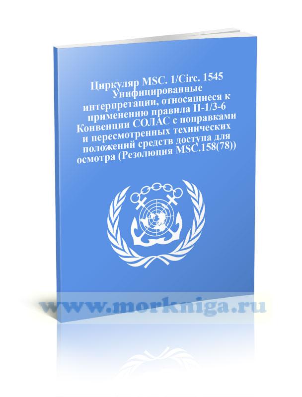 Циркуляр MSC. 1/Circ. 1545 Унифицированные интерпретации, относящиеся к применению правила II-1/3-6 Конвенции СОЛАС с поправками и пересмотренных