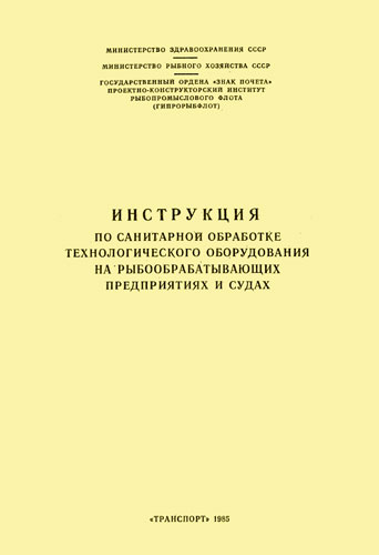 Инструкция предназначена для работников рыбообрабатывающих предприятий и судов флота при проведении санитарной обработки технологического оборудования, а также для специалистов санэпидстанций и соответствующих служб системы Минрыбхоза СССР, осуществляющих контроль за данной обработкой.