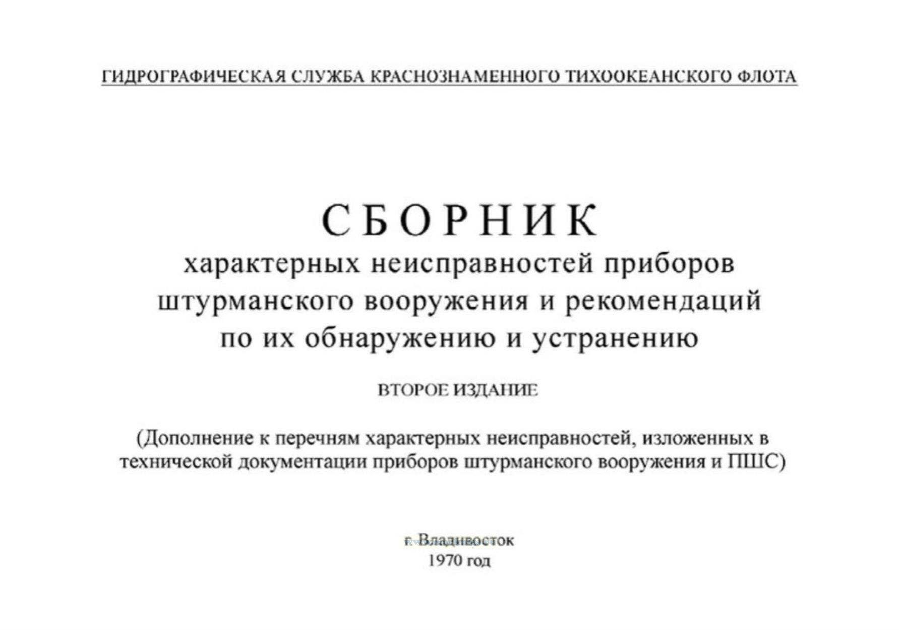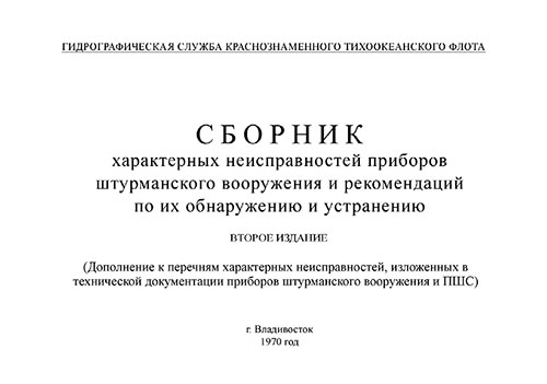 Сборник характерных неисправностей приборов штурманского вооружения и рекомендаций по их обнаружению и устранению составлен Гидрографической службой КТОФ на основании опыта эксплуатации приборов штурманского вооружения (ПШВ) на КТОФ (за период 1965-1969 гг.).