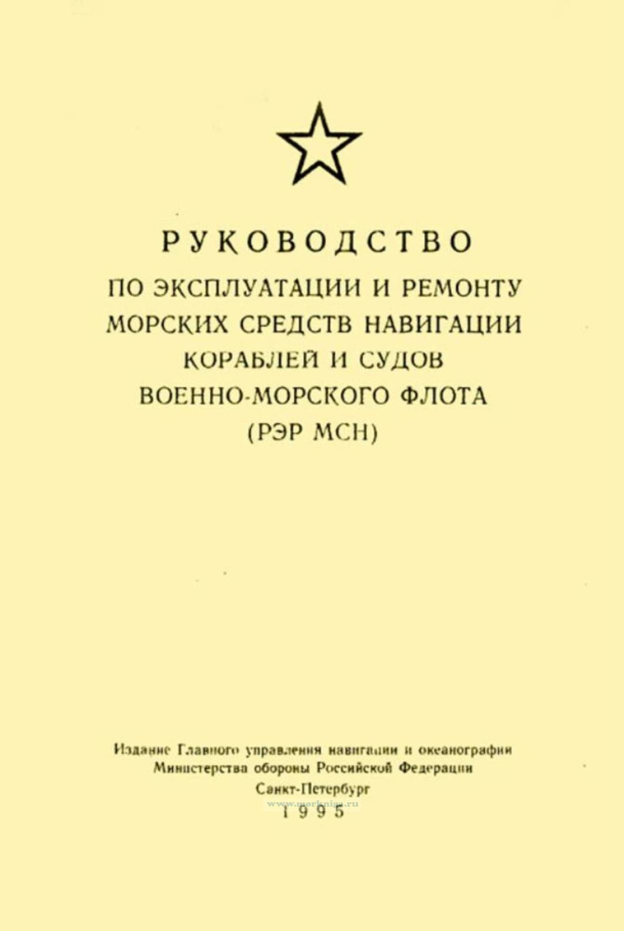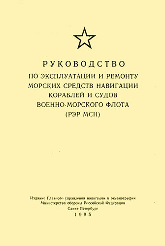 С выходом настоящего Руководства отменяется «Руководство по эксплуатации и ремонту технических средств навигации и гидрометеорологии на кораблях и судах Военно-Морского Флота» (РЭР ТСНГ) изд. 1984 г.