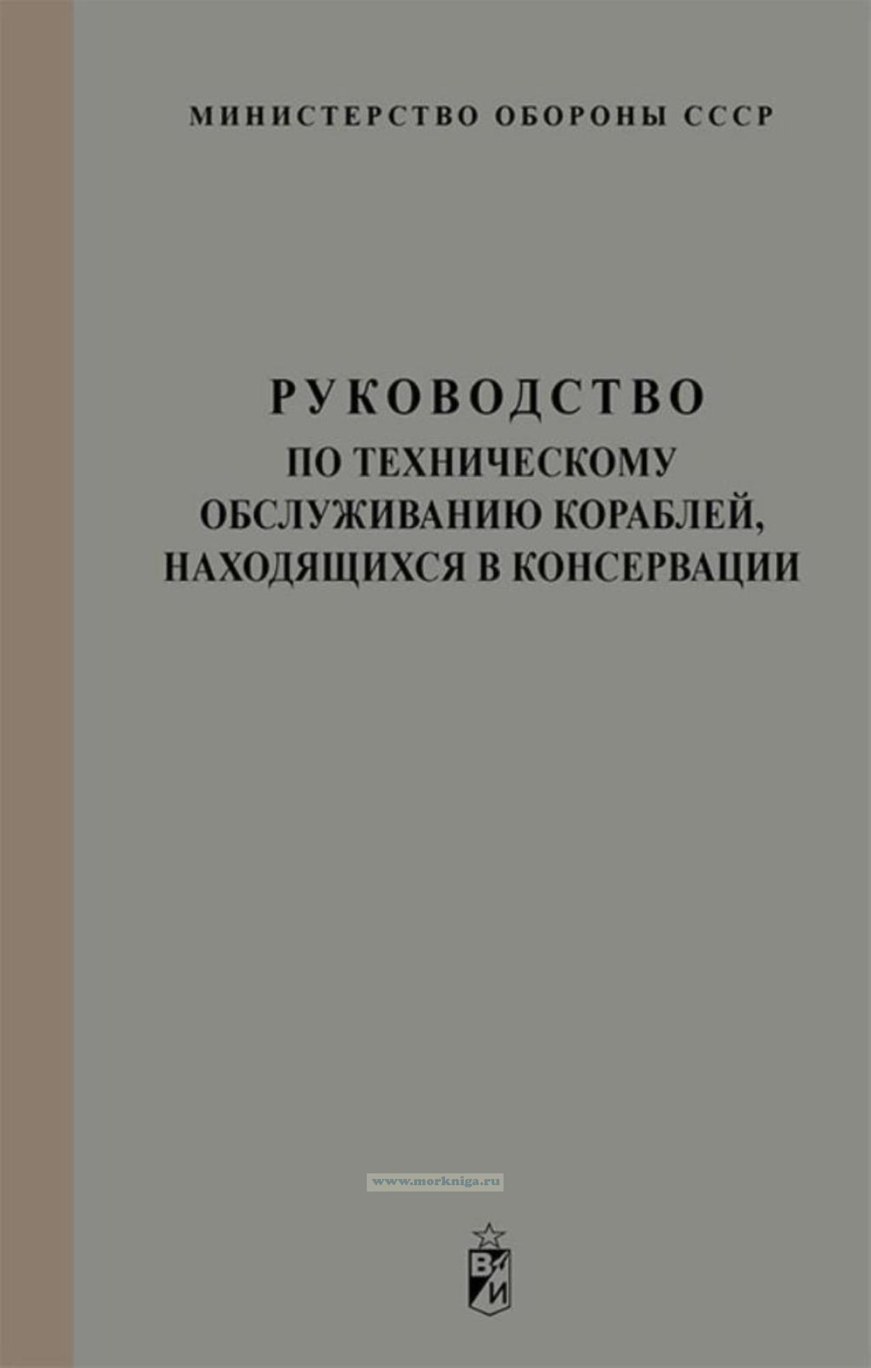 Руководство регламентирует организацию, объем, сроки и порядок выполнения всех работ по техническому обслуживанию кораблей, судов, боевых катеров и подводных лодок, находящихся в консервации.