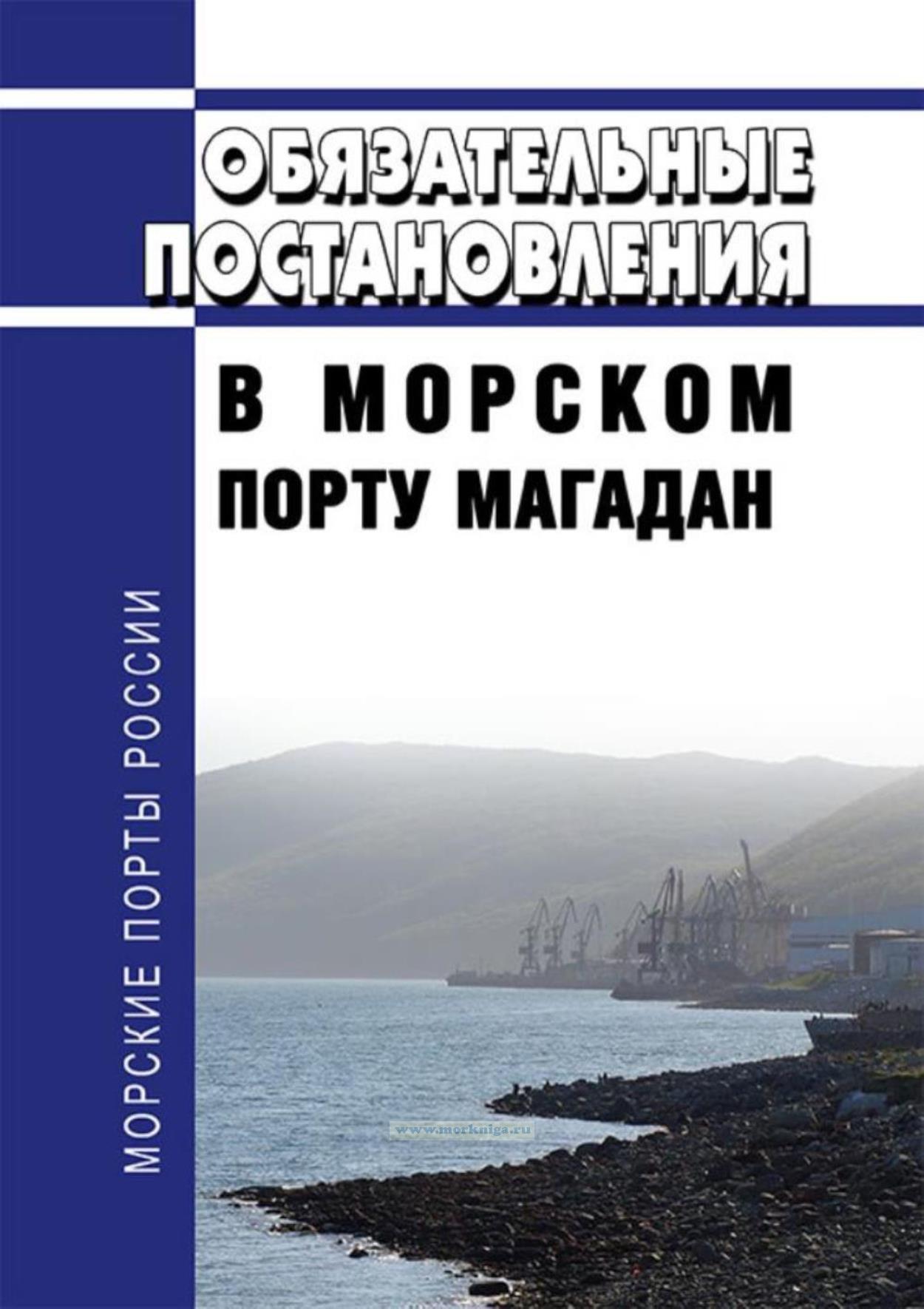 Обязательные постановления в морском порту Магадан разработаны в соответствии с Федеральным законом от 8 ноября 2007 г. № 261-ФЗ «О морских портах в Российской Федерации и о внесении изменений в отдельные законодательные акты Российской Федерации», Федеральным законом от 30 апреля 1999 г. № 81- ФЗ «Кодекс торгового мореплавания Российской Федерации», Общими правилами плавания и стоянки судов в морских портах Российской Федерации и на подходах к ним.