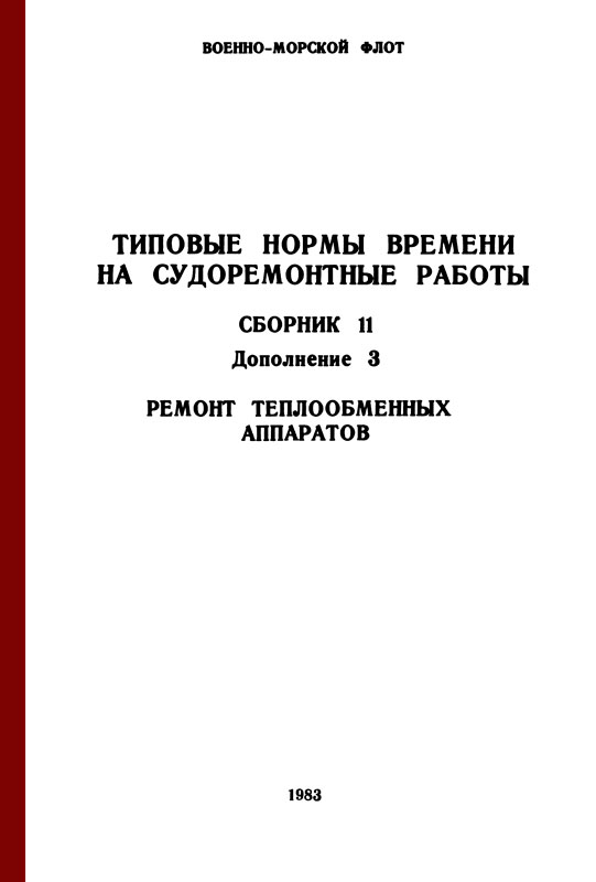 Типовые нормы времени на судоремонтные работы (сборник II, дополнение 3, "Ремонт теплообменных аппаратов") прошли апробацию в производственных условиях на судоремонтных предприятиях, согласованы с отраслевым ЦК профсоюза 1 августа 1983 г., (протокол № 16) и утверждены 30 августа 1983 г.