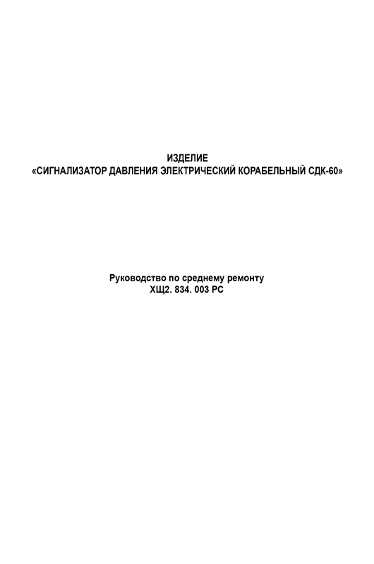 Настоящее руководство по среднему ремонту распространяется на ремонт и приёмку отремонтированных сигнализаторов давления электрических корабельных типа СДК-60, поставляемых по ТУ5.954-0193-73.