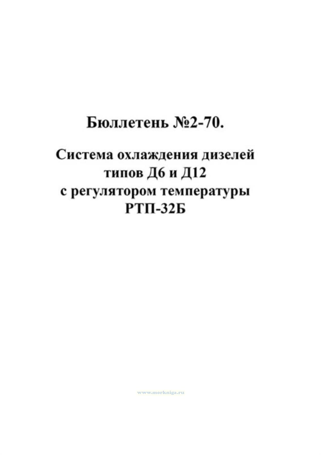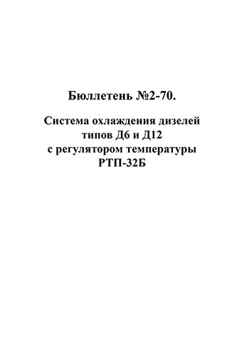 Бюллетень №2-70. Система охлаждения дизелей типов Д6 и Д12 с регулятором температуры РТП-32Б
