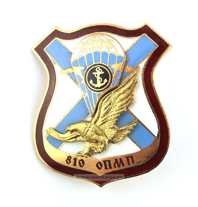 Отличительный знак Десантно-штурмового батальона 810 Отдельного полка морской пехоты выпущен в виде щита, центральную часть которого занимает парашют на фоне Андреевского флага.