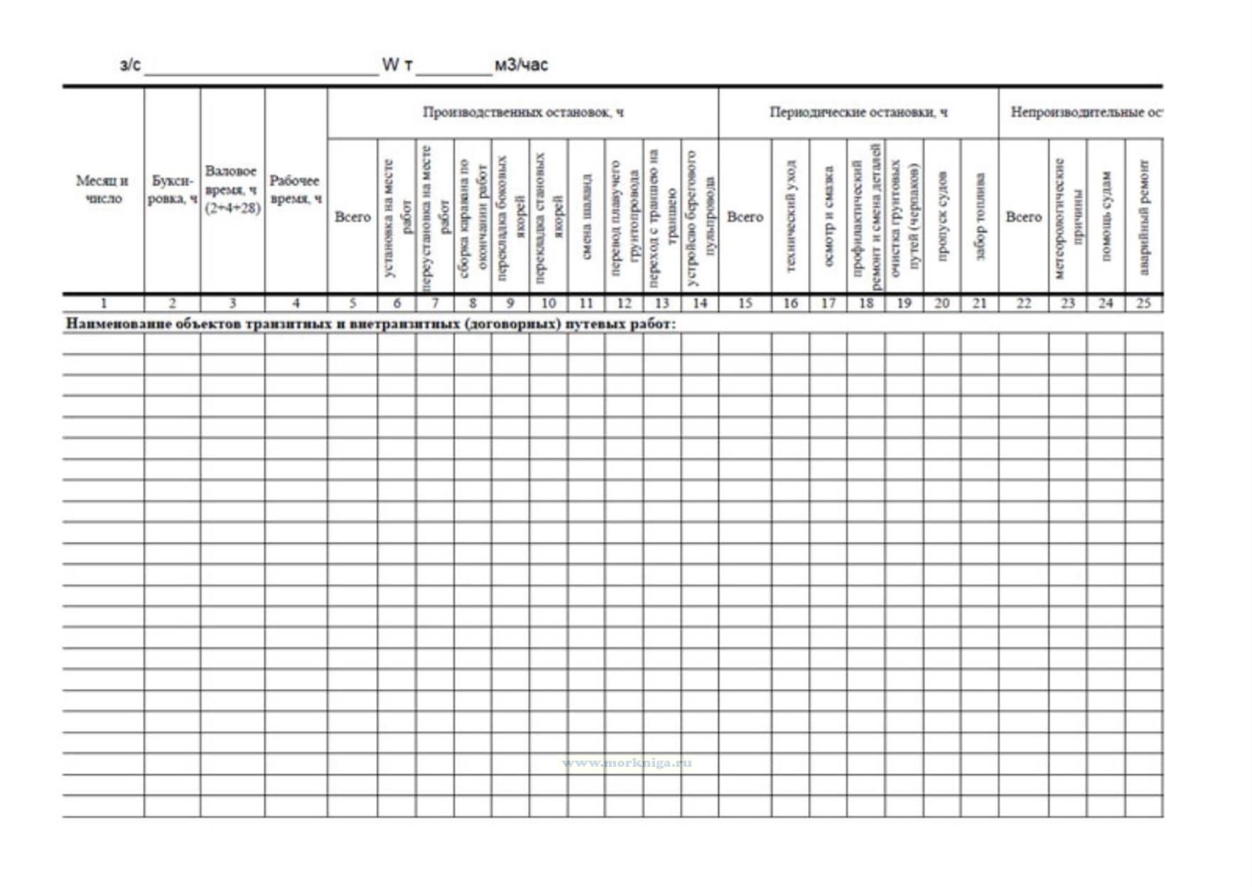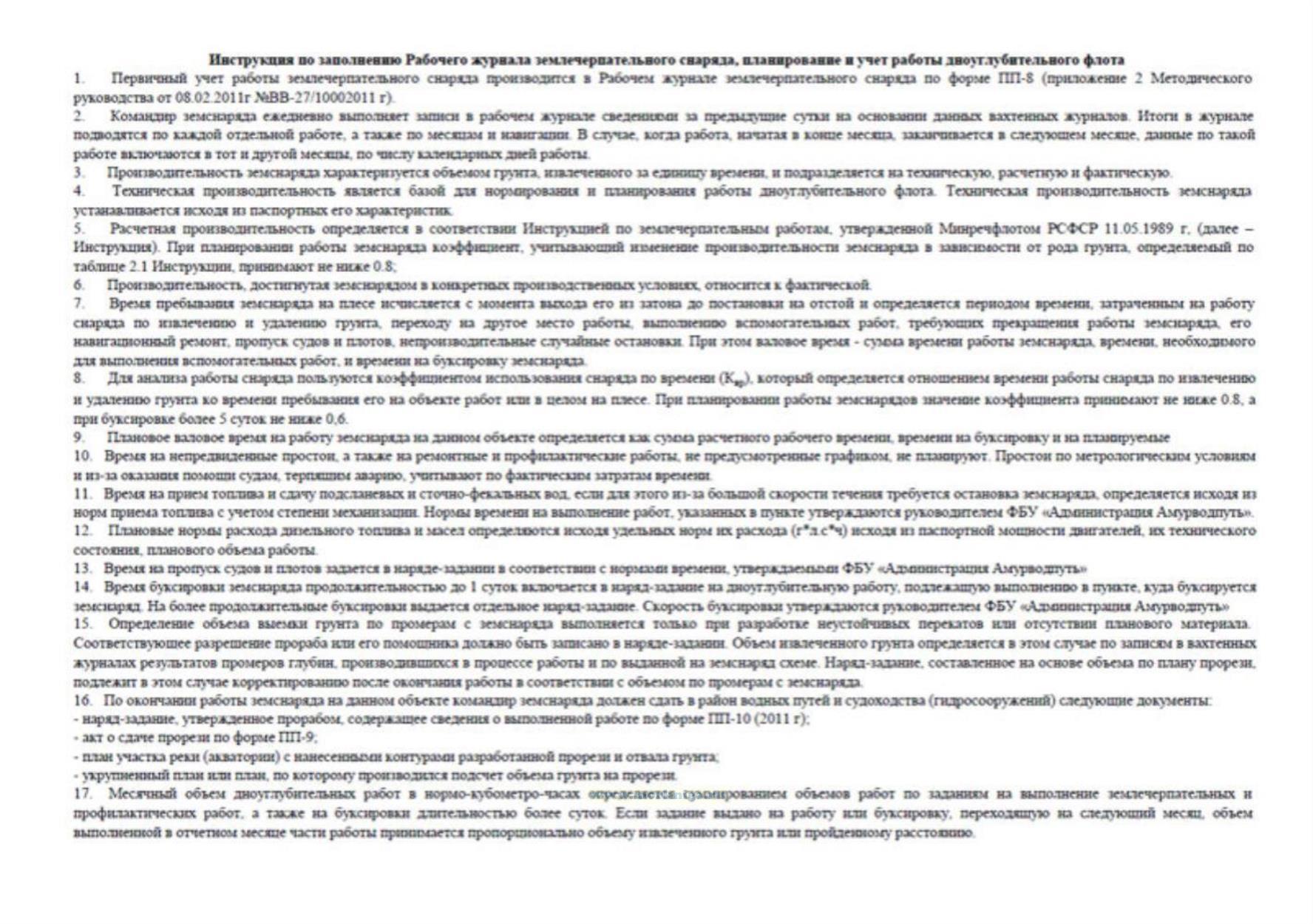 Инструкция по заполнению Рабочего журнала землечерпательного снаряда, планирование и учет работы дноуглубительного флота