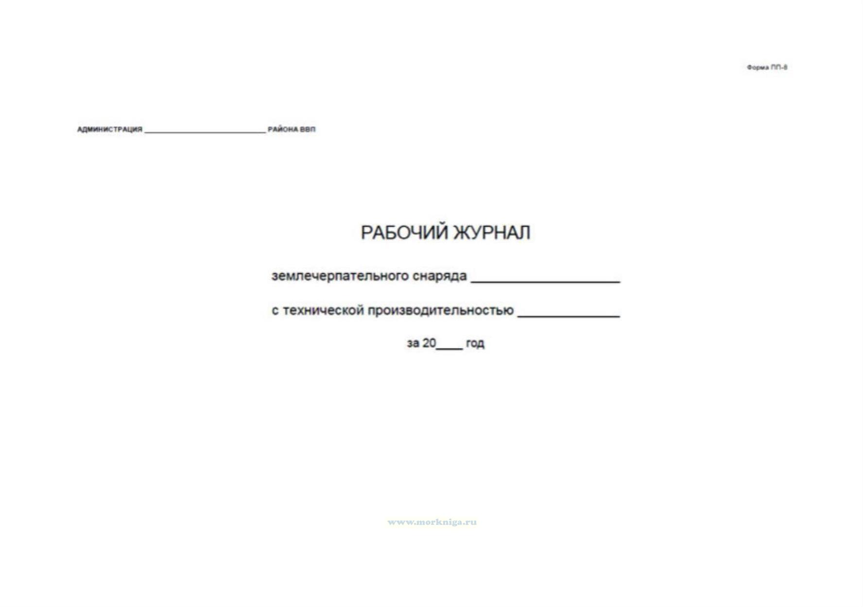 1. Первичный учет работы землечерпательного снаряда производится в Рабочем журнале землечерпательного снаряда по форме ПП?8 (приложение 2 Методического руководства от 08.02.2011г №ВВ?27/10002011 г).