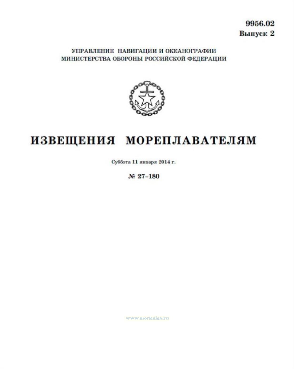 Извещения мореплавателям. Выпуск 2. № 27-180 (от 11 января 2014 г.) Адм. 9956.02
