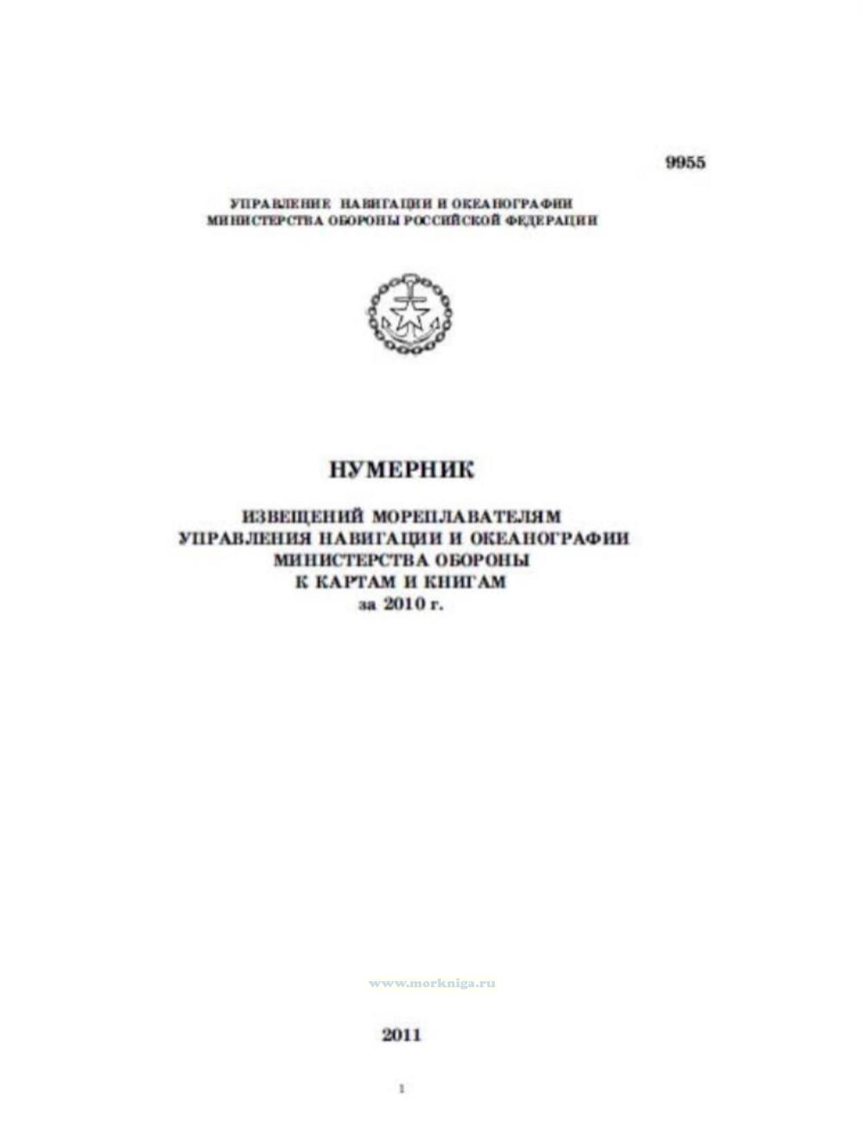 Нумерник извещений мореплавателям управления навигации и океанографии министерства обороны к картам и книгам за 2010 г.