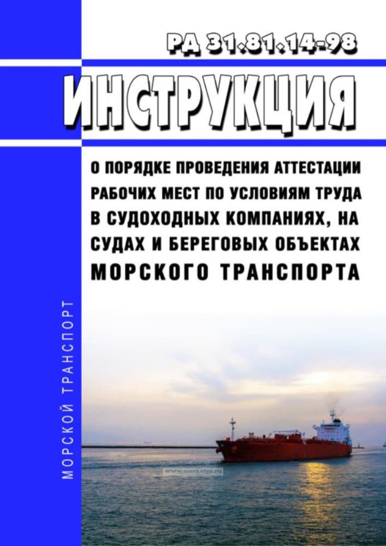 Распоряжение Минтранса РФ от 20.10.1998 N МФ-34/1263 "Об утверждении РД 31.81.14-98 "Инструкция о порядке проведения аттестации рабочих мест по условиям труда в судоходных компаниях, на судах и береговых объектах морского транспорта"