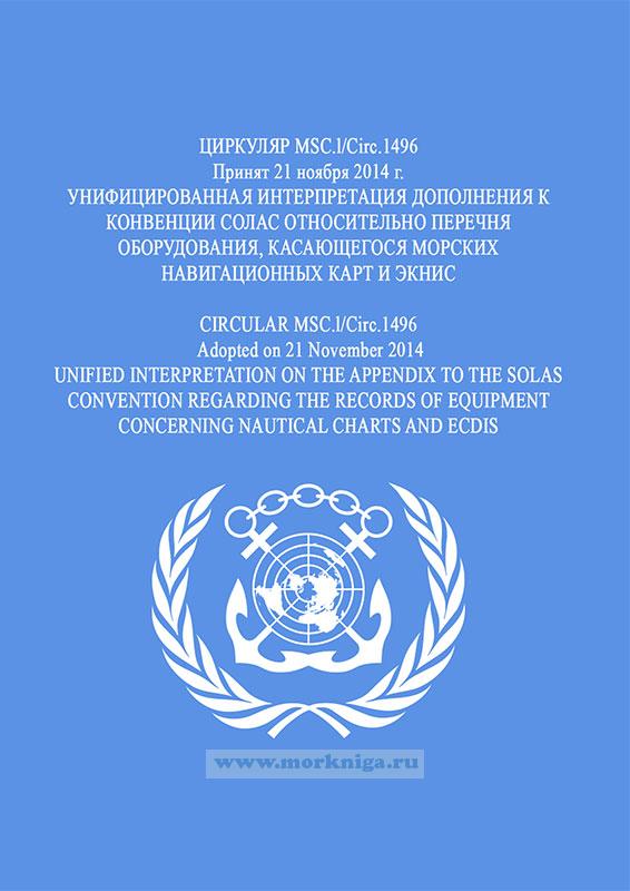 Циркуляр MSC.1/Circ.1496 Унифицированная интерпретация дополнения к Конвенции СОЛАС относительно перечня оборудования, касающегося морских навигационных карт и ЭКНИС
