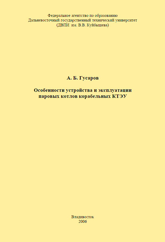 В учебном пособии рассмотрены назначение, классификация и характеристики корабельных паровых котлов, их конструкция, принцип действия, особенности эксплуатации и технического обслуживания.