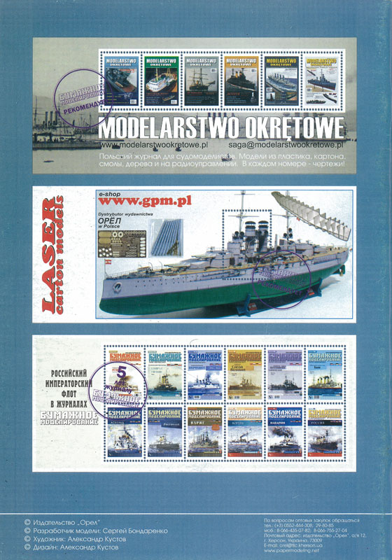 Из особенностей модели хочется отметить отличную деталировку, имеется двухсторонняя печать на листах; винты и прочие элементы из бронзы напечатаны соответствующей краской.