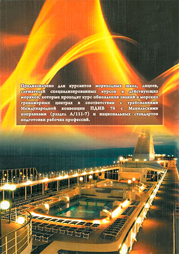 Предназначено для курсантов мореходных школ, лицеев, слушателей специализированных курсов и действующих моряков, которые проходят курс обновления знаний в морских тренажерных центрах в соответствии с требованиями Международной конвенции ПДНВ 78 с Манильскими поправками (раздел А/111-7) и национальных стандартов подготовки рабочих профессий.