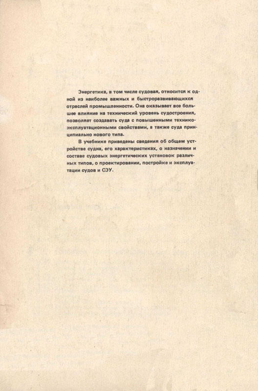 Учебник предназначен для студентов первых курсов энергетических специальностей кораблестроительных вузов, а также для тех, кто интересуется судостроением и судовой энергетикой и решает вопрос о выборе своей будущей специальности.