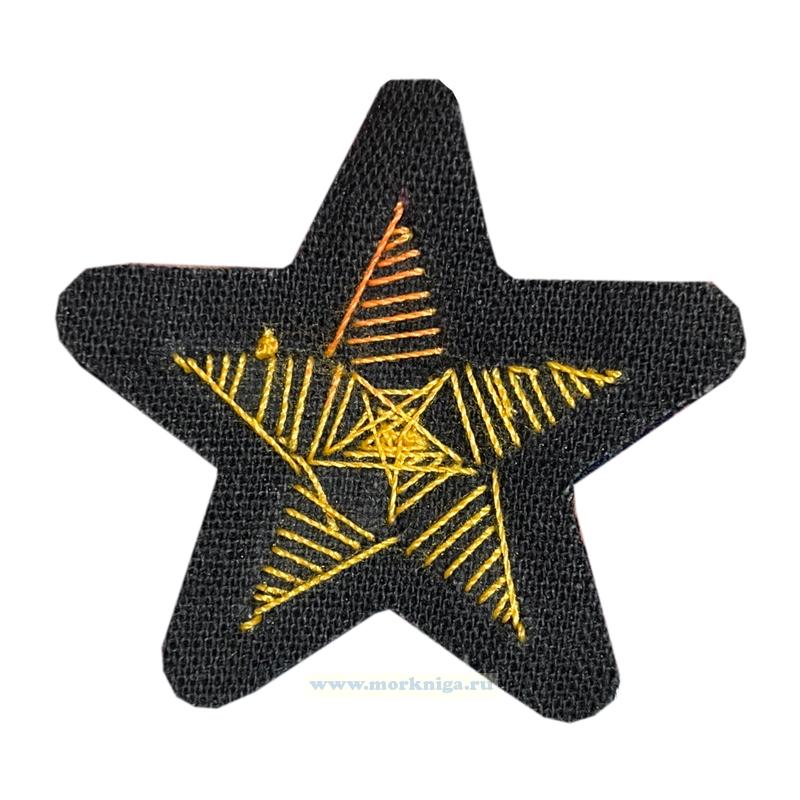 Звезда вышитая для ВМФ на рукав на темно-синем сукне.