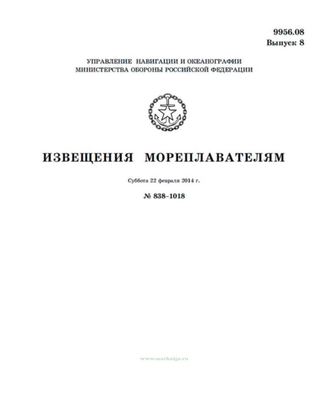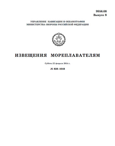 Извещения мореплавателям. Выпуск 8. № 838-1018 (от 22 февраля 2014 г.) Адм. 9956.08