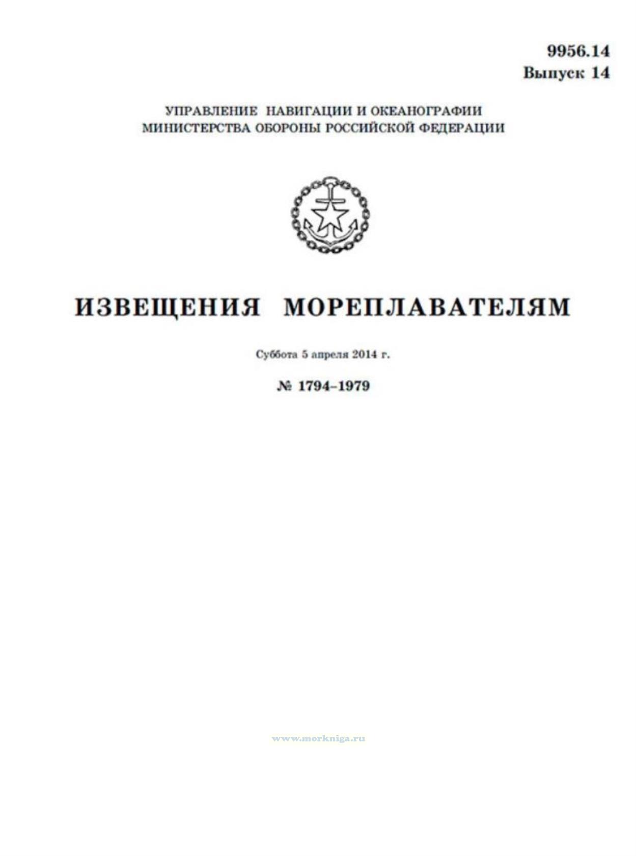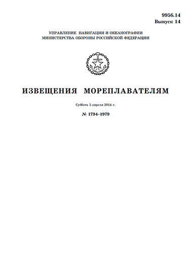 Извещения мореплавателям. Выпуск 14. № 1794-1979 (от 5 апреля 2014 г.) Адм. 9956.14