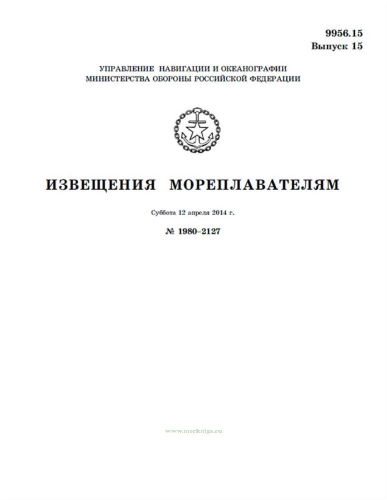 Извещения мореплавателям. Выпуск 15. № 1980-2127 (от 12 апреля 2014 г.) Адм. 9956.15